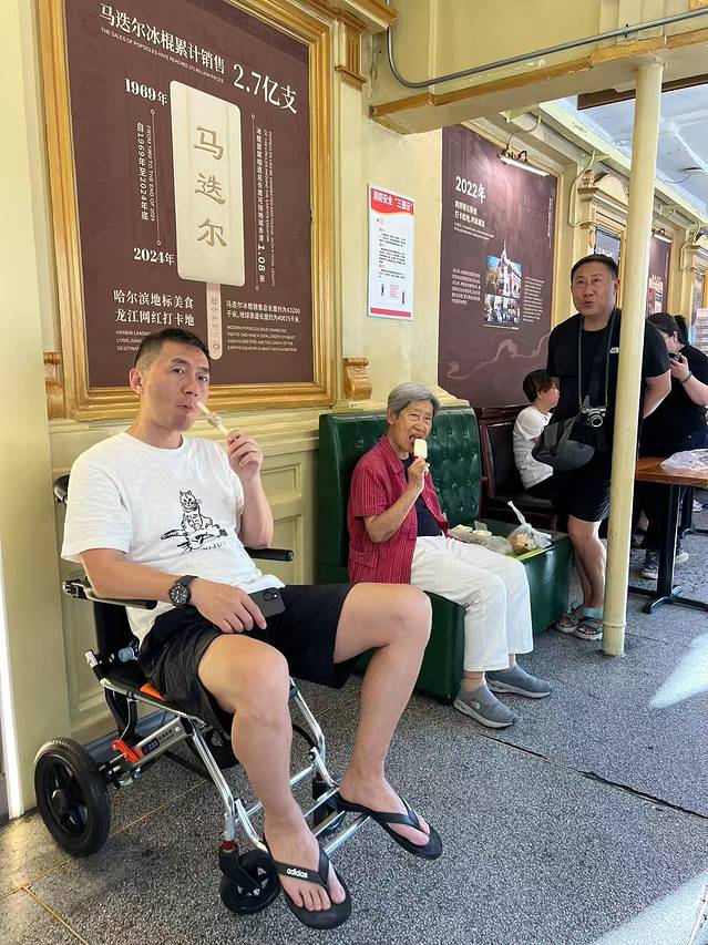 马迭尔宾馆西餐厅,浓郁的黄油香气扑面而来。黄色色的木质桌椅、水晶吊灯下摇曳的烛光,瞬间将时光拉回上世纪初的繁华。马迭尔冰棍不排队是吃不上的,还有裹夹着蓝莓的大列巴面包,麦香与果香在舌尖绽放。