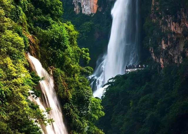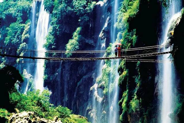 夏日是马岭河峡谷最富生命力的季节,喀斯特地貌的雄奇与水的灵动在此碰撞出令人震撼的自然奇观。峡谷内瀑布在丰水期如银河倾泻,万马奔腾般的轰鸣声与飞溅的水雾交织成清凉的乐章,游客穿行于栈道间,仿若置身“水帘洞”,感受水珠轻拂面颊的沁爽。