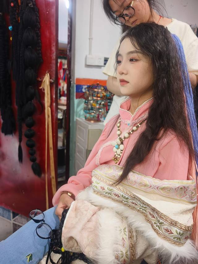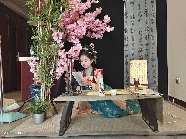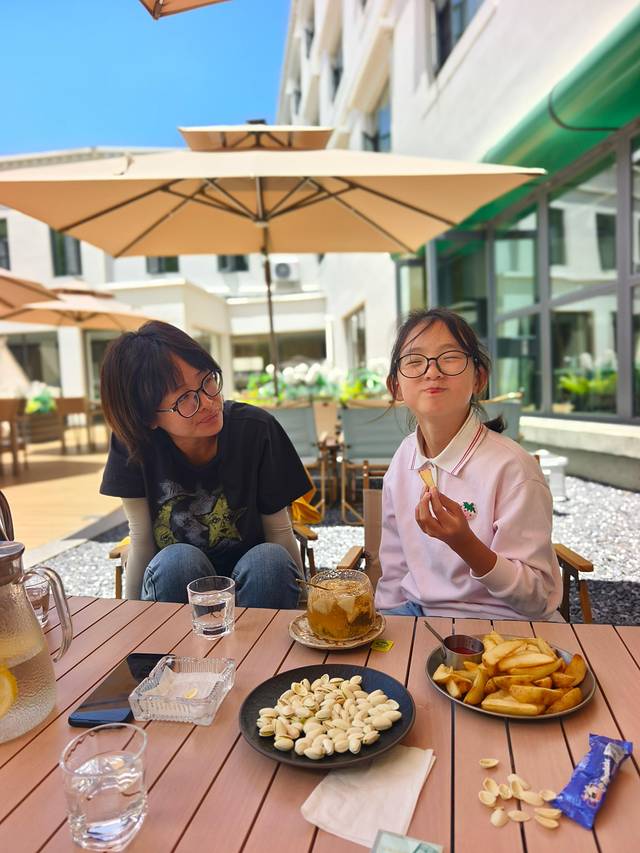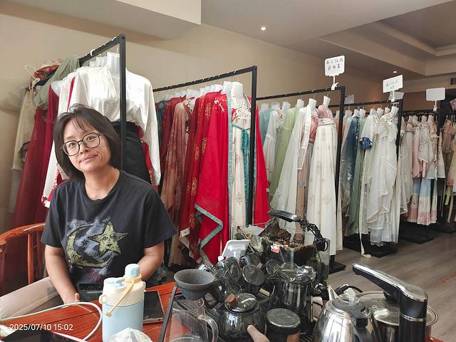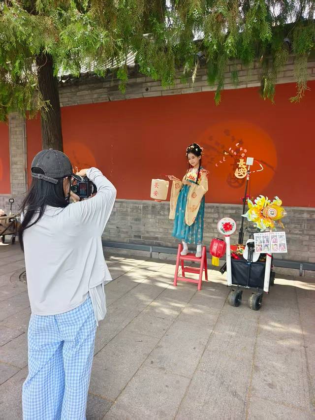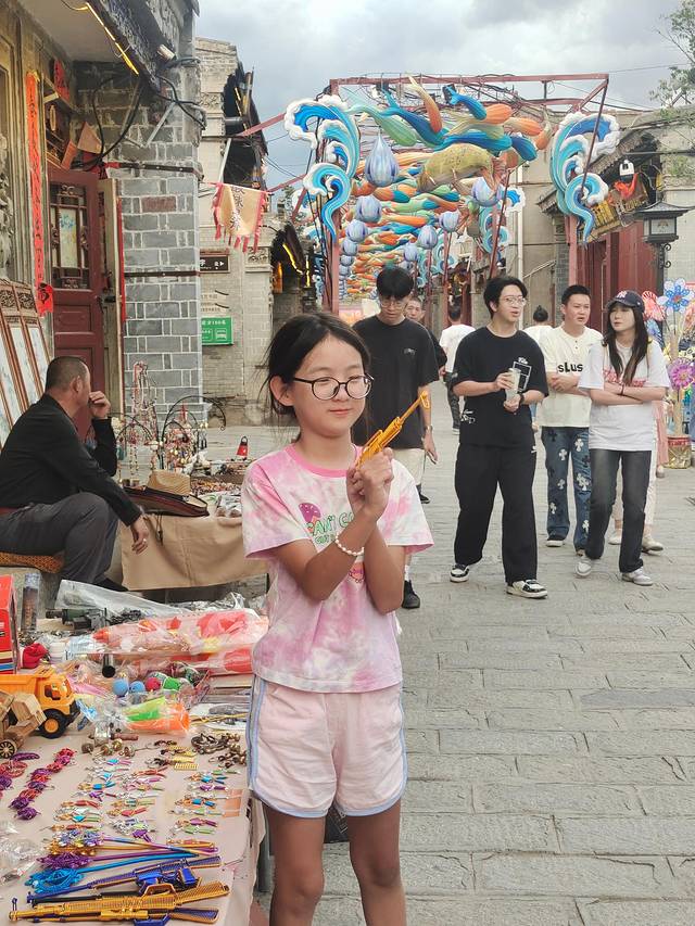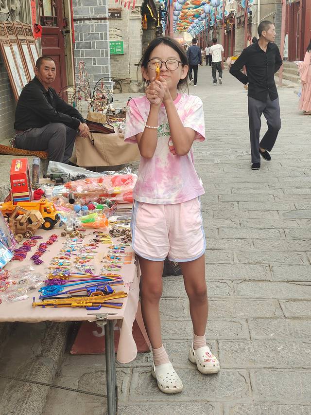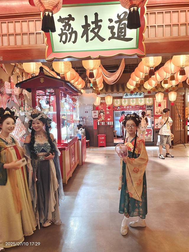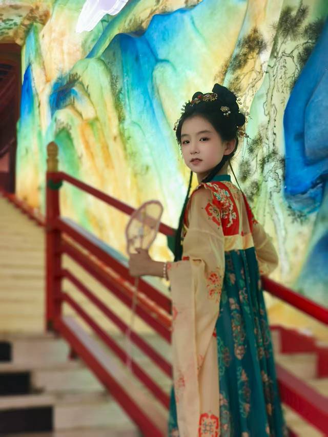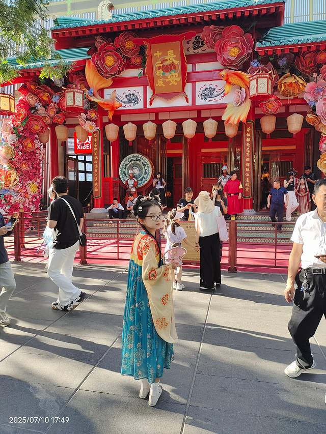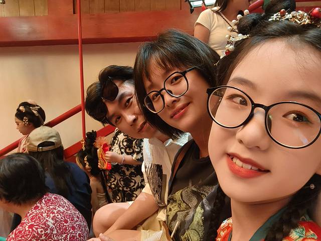 下午起来酒店有免费汉服租赁,女儿未及豆蔻正是喜爱的年纪,挑了一身欢欢喜喜画上妆,出门打卡!注意,这里服装免费,但妆造是一人128,不算贵,孩子开心就好!