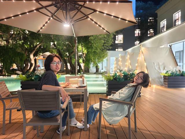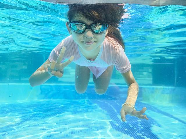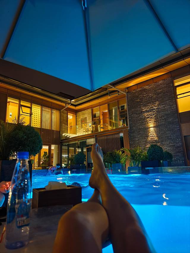 完全没有漂白粉味道的泳池!!还是无边的,贼出片!!女儿来了没换衣服直接就下去了!!!