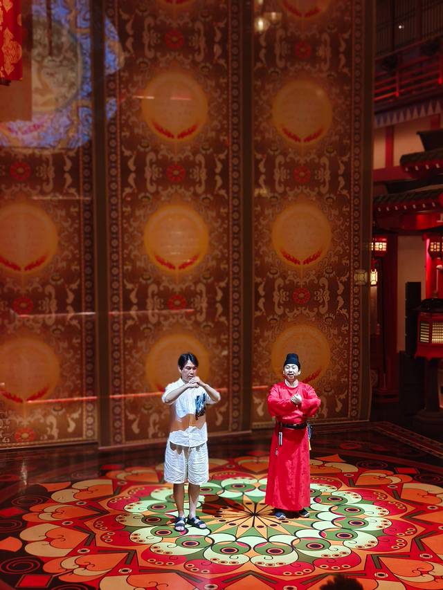 长安十二时辰,是不夜城里面的一个室内街区,需要单独购票,类似一个商场,进去里面有各种商店和定时在一些中心节点的真人演出,还是值得一逛的,各种唐装NPC和游人,配合漂亮的古建筑,精心编排的各种小型演出,有一种穿行于古装剧中的感觉。