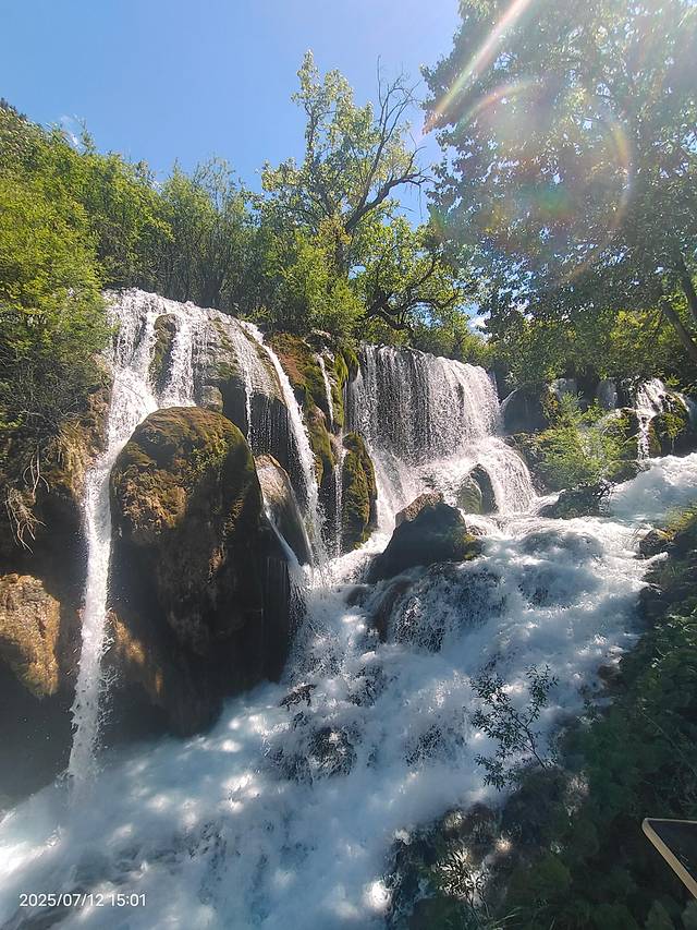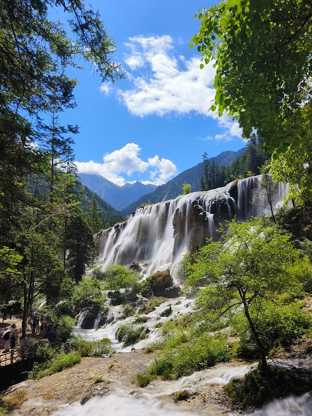 从五花海,一直徒步,根据自己体力走到,一个感觉差不多的点,然后乘车去下一个点,我们是走到珍珠滩,珍珠滩瀑布,以上基本上是景区的最漂亮部分,然后乘车去镜海,转小半圈,然后坐车到诺日朗下;直接去诺日朗瀑布!