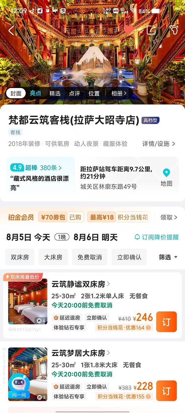 我很后悔没住这!这有停车场!而且就在八廓街入口!!还不贵!!我是到处找停车场找到的!!