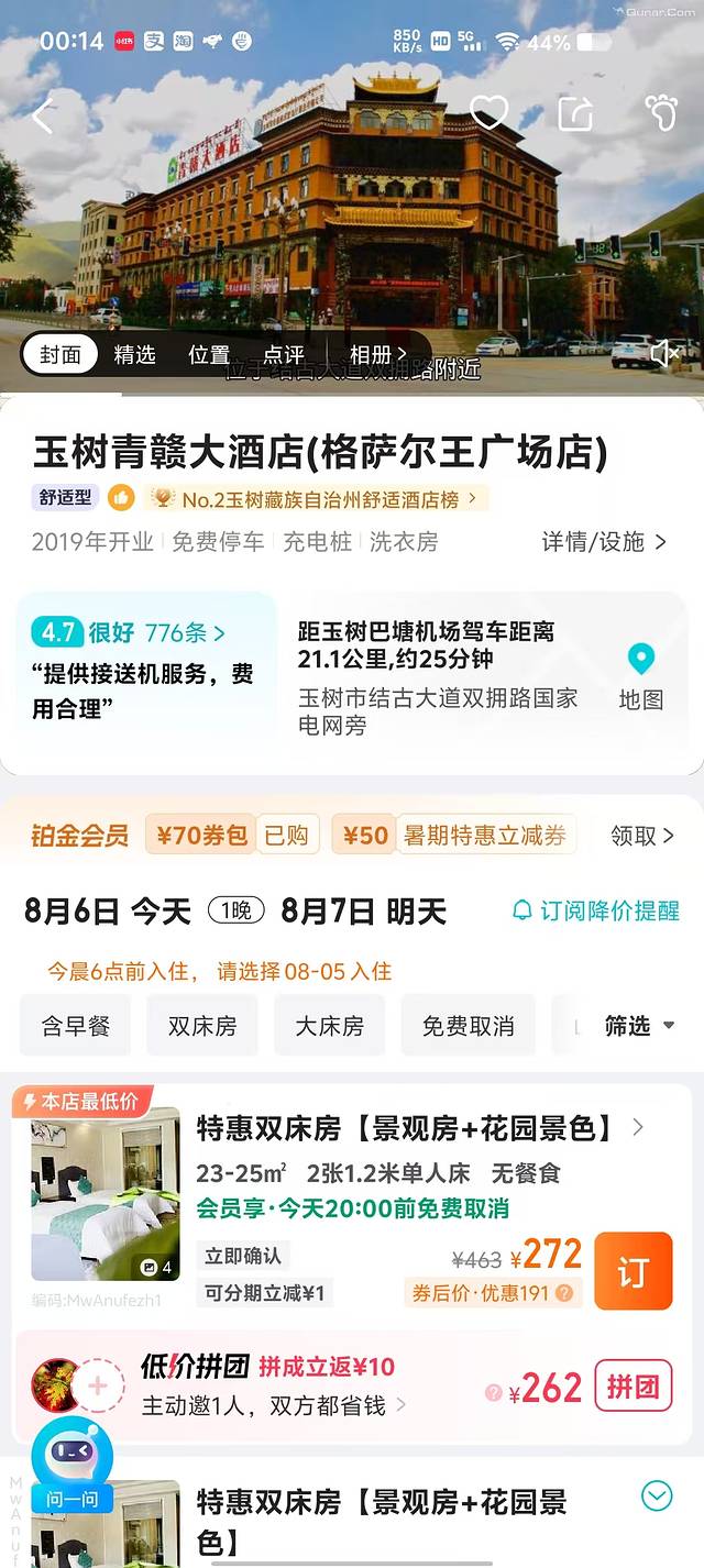 青海湖景色以西线最佳,所以选择住宿,尽量在西线找民宿,当然景色最好的价格也都上千,所以我们找了个尽量性价比的,去哪上面420但显示没房了,无意间看到美团上有!略贵440赶紧定。