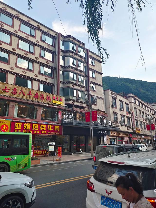 我们从西安到这就下午了,加油260,高速253,住的是县城的宜尚酒店(九寨沟店),它在县城的大路口,停车方便,环境舒适,服务亲切!综合评分4.9,非常推荐给大家,各方面都不错,在旺季两百多的价格含早,简直良心极了。豪华双床2天516含早,步行去吃饭,吃完饭凉风习习,从河边遛弯到酒店,巴适极了!