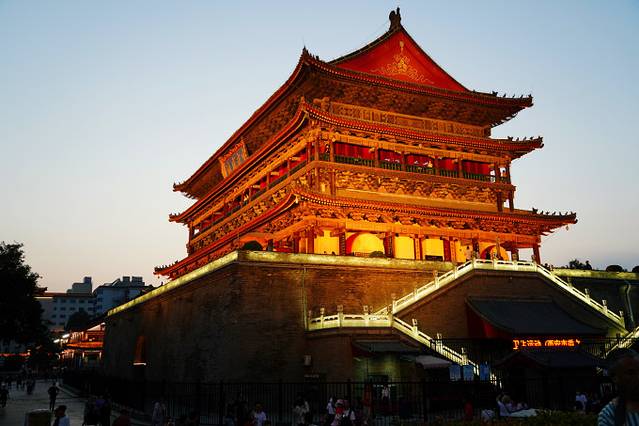 钟楼,西安最具代表的地标建筑之一,它位于西安市中心,真正的城市中心!相当于轴心位置,东西南北四条大街在此交汇,分别与明城墙的长乐门、永宁门、安定门和安远门相接。钟楼内外装饰着大量的精美石雕和木雕,这也基本代表了那个年代建筑装饰的高峰。走两步就是鼓楼~