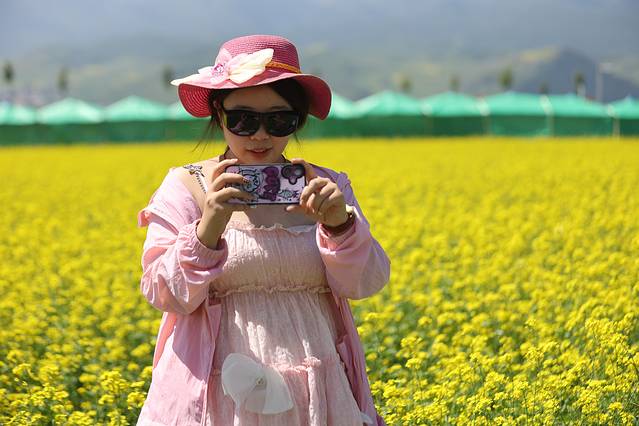 油菜花田!看镜头,我来给你们拍照
