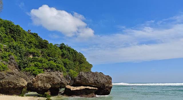 清晨从国内飞抵巴厘岛努拉莱伊机场,热带的风夹杂着花香扑面而来。入住库塔海滩附近的度假酒店后,直奔著名的**库塔海滩**,光脚踩在细软的黑沙上,看当地人在浪尖冲浪的身影。傍晚在**海滩边露天酒吧**点一杯Bintang啤酒,等待印度洋的落日将天空染成粉紫色。