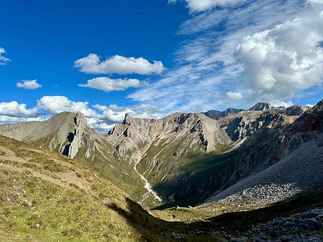【洛克之路】:约瑟夫·洛克在20世纪初来到中国,从洮河边的扎古录小镇沿着车巴沟翻越光盖山到达迭部扎尕那,这条路被人们称为“洛克之路”。也被称为中国醉美100公里。沿途风光变换,各种地貌尽在此展现。灰白色的山体异常雄伟,蓝天白云、高山草甸,一切都是那么地原生态、唯美自然。