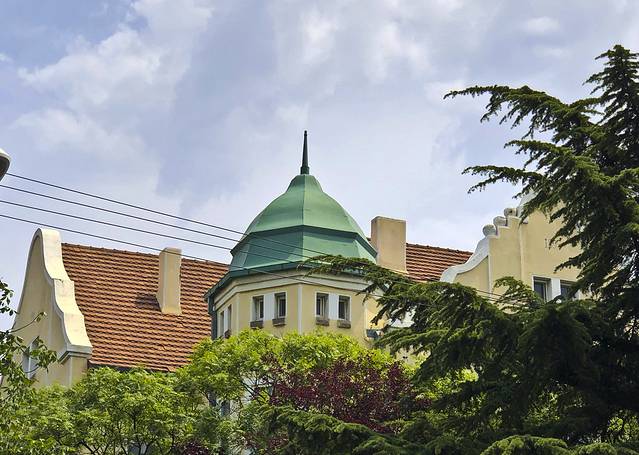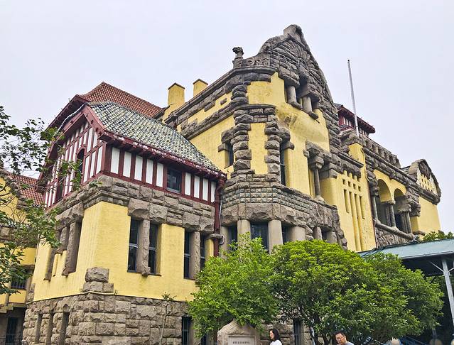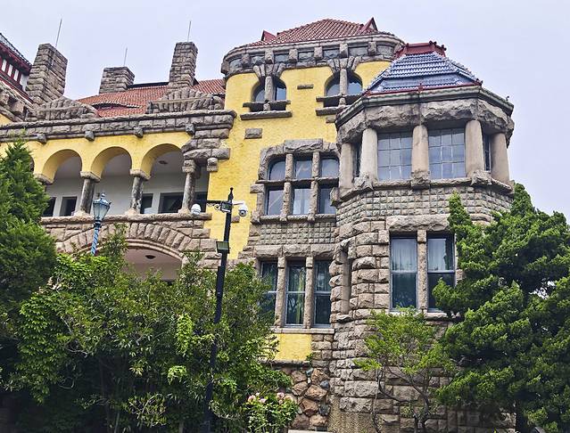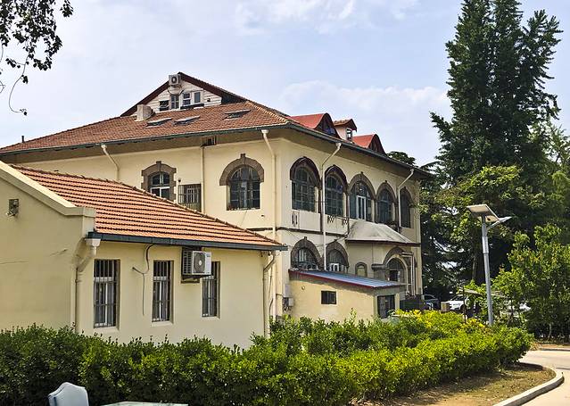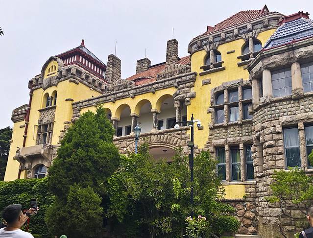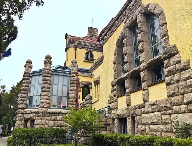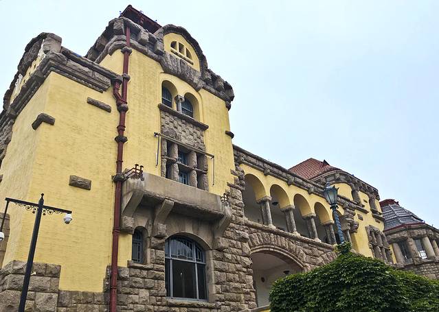 9:00出门,先去了青岛美术馆,也是世界红十字会青岛分会“万字会”旧址,从我的酒店步行500米就到了。进入院子便置身于青岛优秀历史建筑群中,始建于1934年至1940年,将罗马柱廊式、中国宫殿式、阿拉伯式三种不同风格的建筑集中于此,别开生面。