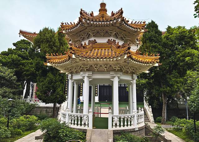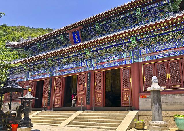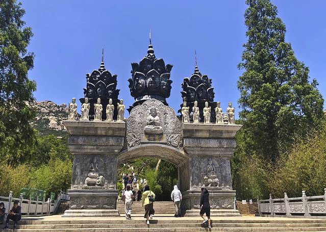 乘上观光车到达华严寺,华严寺始建于清顺治九年,后多次修建,是中国佛教临济宗寺院,崂山三大寺院之一。 华严寺依山势而建,是青岛市较大的佛教建筑群和佛教文化传播中心。