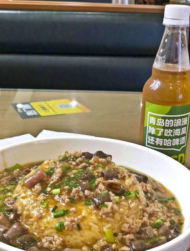 中午了,这片也游得差不多了,便去了事先关注的“鱼山小馆”要了一份海肠捞饭78元,路上见到一个生啤小车,10元接了一小瓶,就海肠捞饭正好,不难吃但也没达到预期。