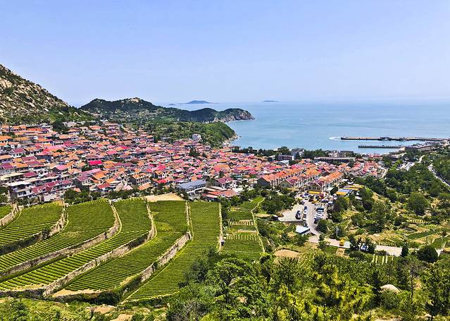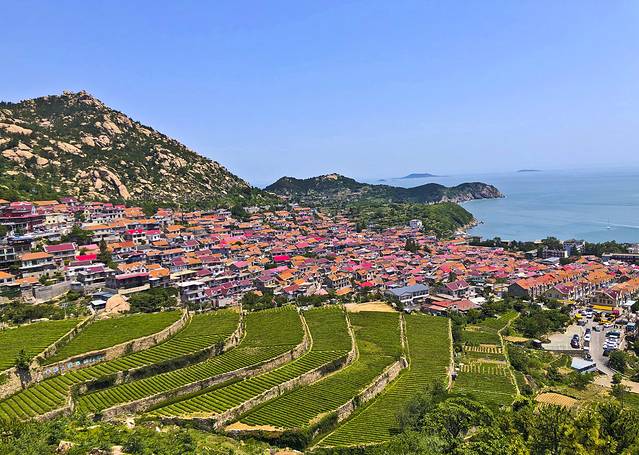兜兜转转近2小时游览了太清宫。之后乘观光车到太清宫景区索道站,准备步行一段去青山渔村看看。其实垭口是距离青山渔村最近的观光车站,以前这里有站,现在没有了。300米到达垭口,也就是青山渔村排坊处,自驾的可以穿过排坊下山进入渔村。非自驾的可以继续沿公路边上的木栈道向前走,美美的青山渔村就在右手边脚下。我一边向前走一边欣赏拍照,最后一直走到观景台,大约五六百米左右,这里是最佳观景位置,蓝蓝的大海,红房顶渔村,与绿绿的茶园组成一幅大自然的美好画面。阳光丽丽地洒在这幅画作上,真是上帝的神笔让人为之心动。