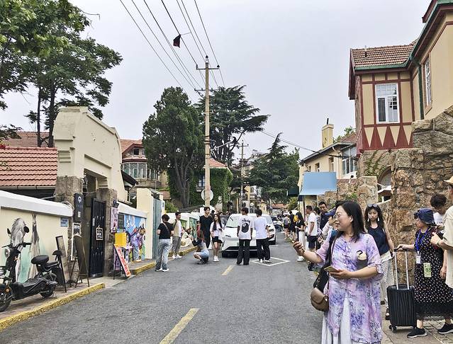 这里是大学路和鱼山路的交叉口,青岛的网红打卡地,永远聚集着年轻人在拍照。