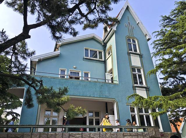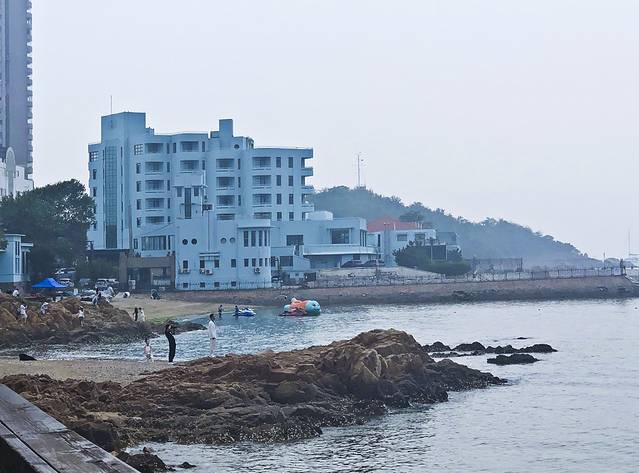 安顿好休息到2:30去游八大关。今天有雾,周日人比较多。八大关就像一座大花园,绿树成荫,掩映着一幢幢小洋楼,环境很美。这里有八条马路(现已增到十条),是以中国古代长城著名关隘命名的。此处是著名的别墅区,人称“万国建筑博物馆”。但可以进入参观的只有花石楼、公主楼、蝴蝶楼,其它不开放,且不少被树木遮挡,无法全面欣赏。