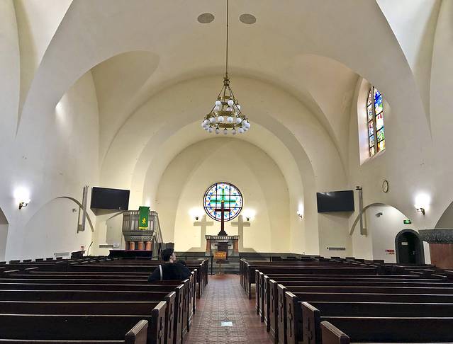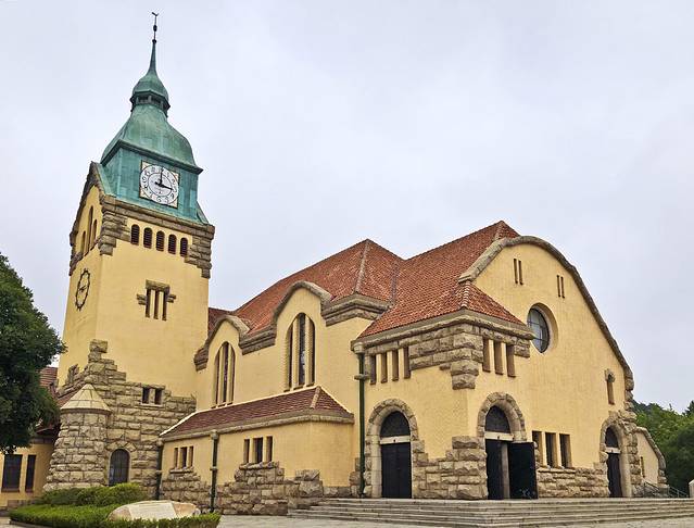 休息到下午2:30,去了附近的江苏路教堂,在一个小山上,建筑造型美观,内饰也不错。始建于清光绪三十四年。基督教堂建筑砖石结构,德国古堡式建筑,具有较高的艺术价值和历史价值。第四批全国重点文物保护单位。