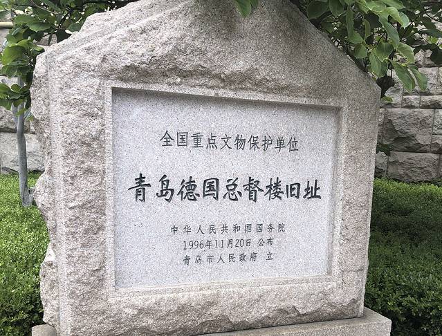 教堂的院子下面就是我多次走过的地铁站。从这里的较高位置放眼四顾,周围漂亮小洋楼挺多,院子里环境很好,我在绿树长椅中坐了一会儿,下来又忍不住走走湖南路。到了胶澳总督府旧址前,如今大楼是个政府机关,前面大片草坪,环境好,地势高,向下一直看到大海。还有不少休息的长椅,面对大海坐下来,享受在美好温柔的环境中。