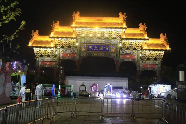 当郭沫若笔下"天上的街市"化作现实,华蓥的夜晚便有了别样的诗意。南宋风格的建筑群在灯光下流光溢彩,青石板路上人来人往,小吃摊的烟火气与文艺表演的欢笑声交织。安丙铜像矗立在广场中央,默默守护着这座城市的古今变迁;安公廊桥连接着安丙文化公园,紫铜浮雕讲述着南宋名将的传奇人生。站在牌坊下俯瞰老城,万家灯火如繁星闪烁,恍惚间分不清是人间烟火,还是天上星河。