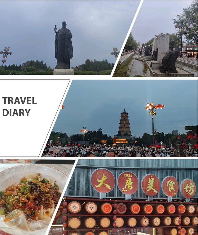 晚上的西安天空褪去了白日的酷热,“人山人海”在大唐不夜城具象化了。吃了当地特色𰻝𰻝面(28元),味道还行但价格小贵,有点类似重庆的铺盖面🍜。小玩一会,与伙伴搭乘地铁🚇🔙酒店。