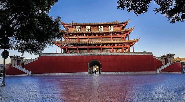 朝阳楼,位于云南省红河哈尼族彝族自治州建水县城中心临安路东端,始建于明洪武二十二年(1389年)。东门,比天安门还早28年!