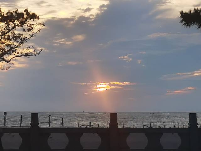 D4:起床看个日出,这里的日出真的好美,如果有的话,我们住在仰口海水浴场附近长湾山庄海景酒店,看日出很近。酒店吃个早餐,本打算去小麦岛逛逛,天气不太好,浴场关闭,孩子们也没啥兴趣,就在附近挖沙。中饭买了崂山特产15块的王哥庄大馒头,外加三桶方便面,吃个方便面后打车到科技馆。打车费约87.2,这个时间段还是比较好打车。科技馆里大多是海洋为主题,孩子们对“物理实验室”比较感兴趣。5点闭馆想去周边吃个晚餐,这里太偏了,根本找不到吃饭的地方,又花18元打车到红岛站,以为有KFC之类的,然而并没有,美团上点了两份红烧肉饭和一个海鲜粥(最后粥还忘记送),57元。孩子们把行李箱当餐桌,又吃了一顿难忘的晚餐。坐7点50分的高铁出发到威海站(本打算从青岛北坐C6511,没票了)。晚上10点多到站后打车到荣成闻涛路那香海度假花园。打车费约50元。今天真是舟车劳顿的一天呀。