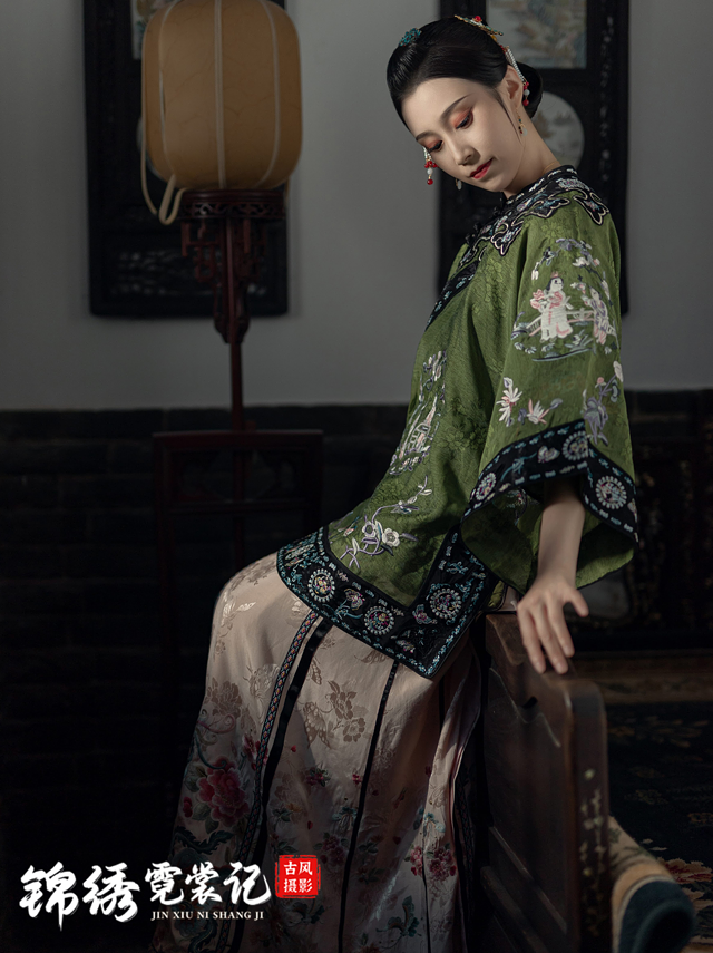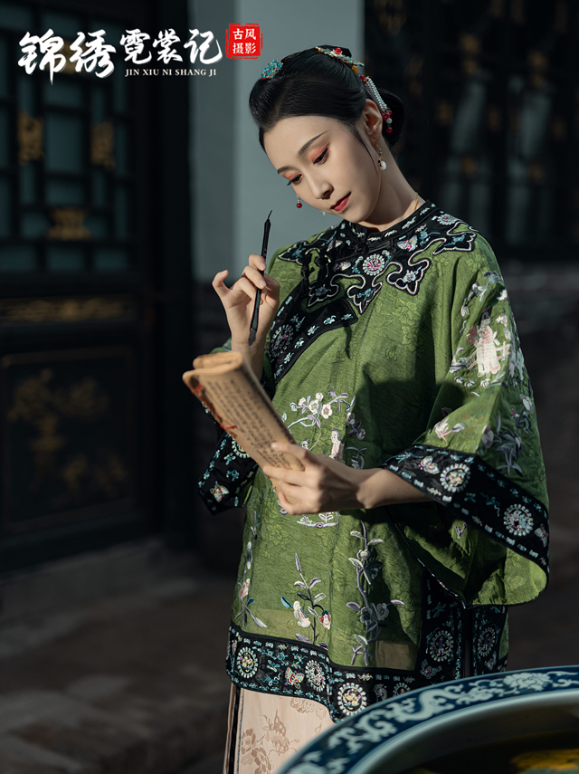 我的目光落在一件墨绿古董衣上,绣工精妙绝伦,每一针每一线都仿佛在诉说着古老的故事。当我小心翼翼地穿上它,那温婉的气质竟与这古衣相得益彰,仿佛我本就是从旧时光中走来的佳人。