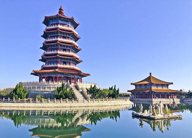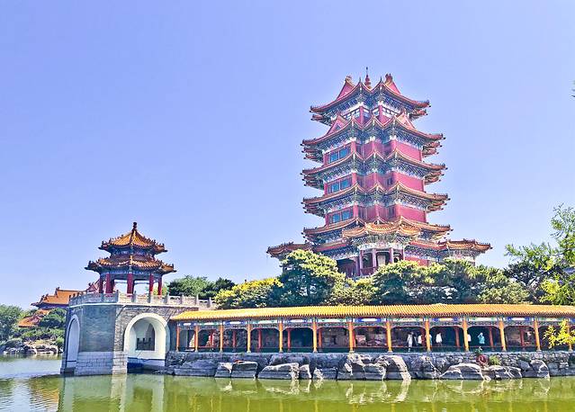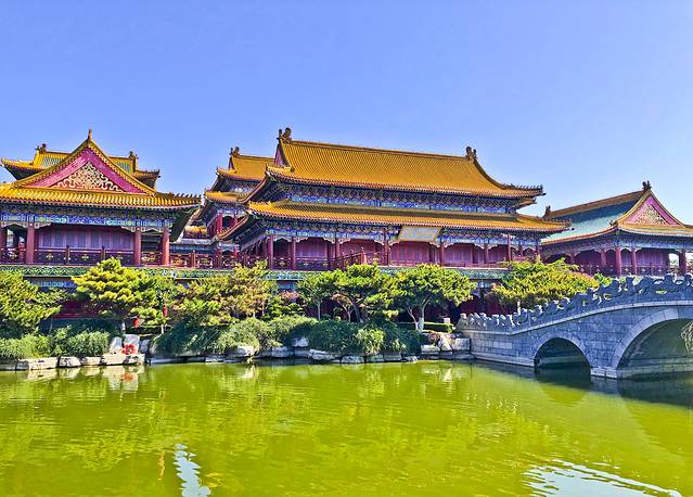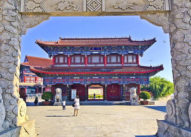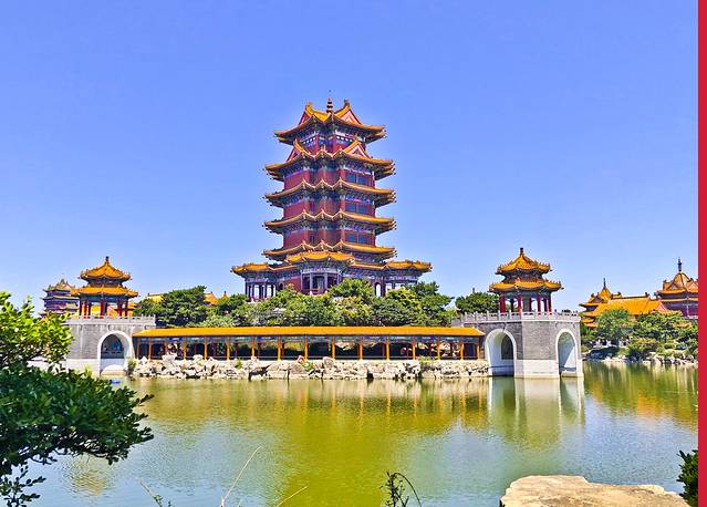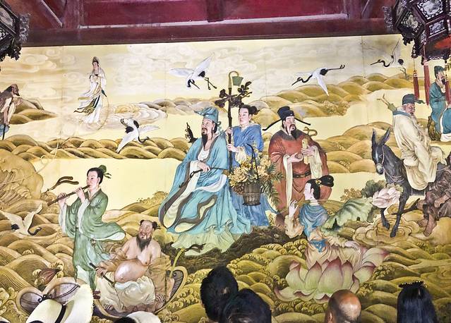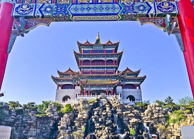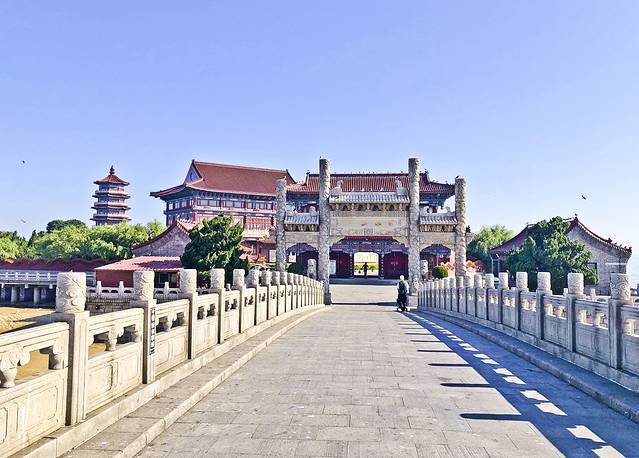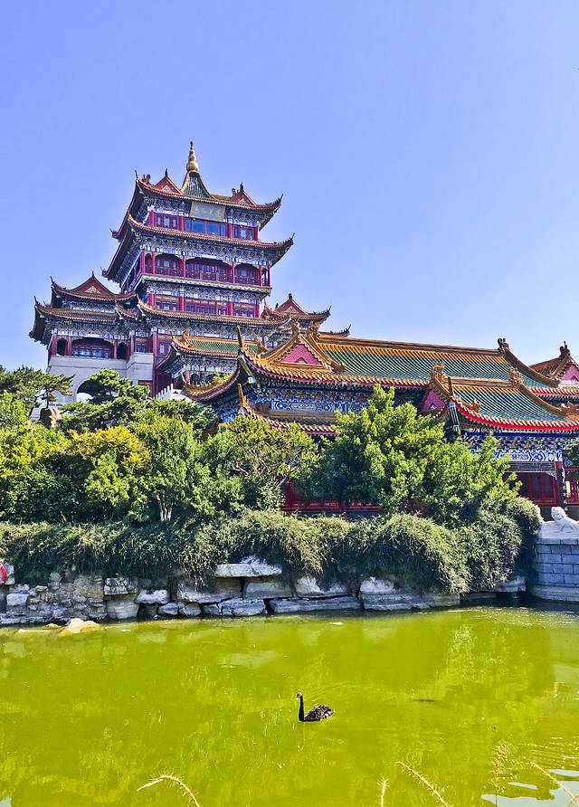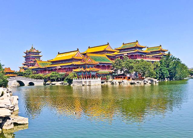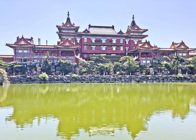 慢慢欣赏着,虽然都是新建筑,但楼阁造型均有出处,有的是著名古画中的仙境,有的是八仙过海传说中描绘的场景,三个小岛各有特色,如此欣赏还是尧有趣味的。