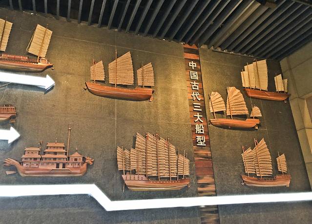 先去参观了古船博物馆,展示了蓬莱出土的四艘元明时期的中外古船,及紫檀木舵杆、黄花梨造船木、木锚、云龙纹白釉罐、宋耀州窑刻牡丹纹执壶、碗口炮等国家珍贵文物。还有经常在小说里面听到的各种古船的模型,在这里知道了它们的样子。还有鸳鸯阵的示意图,很涨知识。