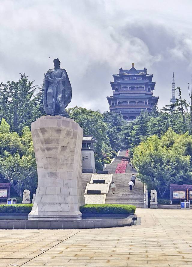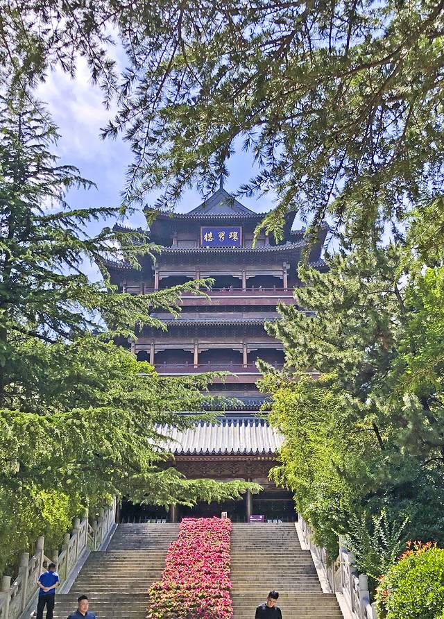 到了公园天空完全放晴了,抬头一看还要爬挺高的台阶才能上去,但来都来了也得顶着太阳上呀。环翠楼原来也是一处古建筑,始建于明弘治二年(1489),明代巡察副使赵鹤龄重修威海卫城,指挥使王凯等感公之德,捐俸建楼以纪念。