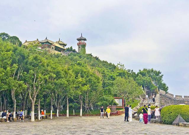 进蓬莱阁景区,观光车路线不太好,便自己走。蓬莱阁始建于北宋嘉祐六年(1061年),历代屡加修葺,没有经过重建,至今仍保持北宋原貌;因“八仙过海”传说和“海市蜃楼”奇观而闻名四海。多年前出差时游过这里早就没印象了。如今除了蓬莱阁古建筑群,还有戚继光纪念馆、蓬莱水城、水师府、登州古船博物馆、中国船舶发展陈列馆、以及田横山和黄渤海分界线等多处景点。