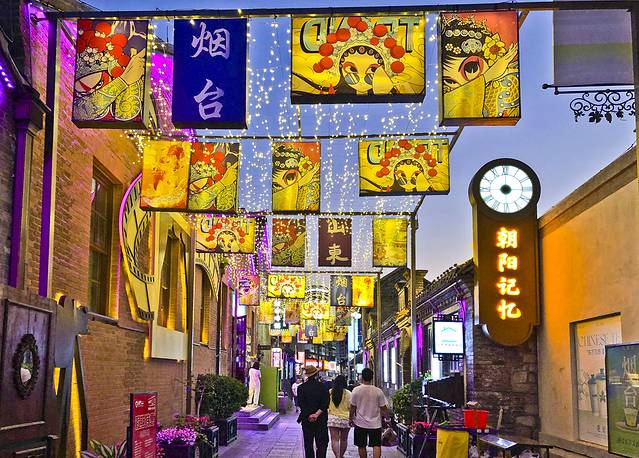 朝阳街上有家瑞幸咖啡,来时没开门,现在过去点了一杯。之后再乘几站车到所城里。所城里是烟台城市发源地之一,始建于明洪武三十一年(1398年)的奇山守御千户所旧址。