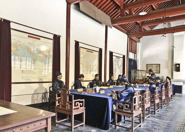 再向前便是甲午战争博物馆,这片古建筑群原是北洋海军提督署。我是从后门进入的,院子内的建筑很有观赏性,里面陈列着当年办公室的用具,让人感受着那些年代中国海军的工作情况,看着让人很有感触。