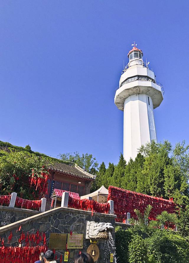 山顶就是墩台灯塔,有电梯可上顶观赏山下风光。