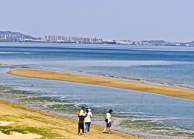 夜里开始下雨,上午一直下到10:00多才停。我还有两个景点了,半天足够了,上午就没出去。并查了潮汐信息,晚上5:00是大潮,到林海景区看黄勃海分界线涨潮是看不到的。昨天中午啥也没搞清楚就去了,没找到景点,就是找到了正在涨潮时间。
