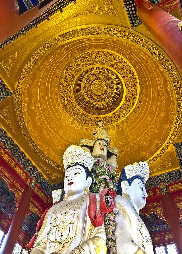 向东步行300米就是三仙山景区,由三和大殿、蓬莱仙岛、方壶胜境、瀛洲仙境、珍宝馆、玉佛寺、十一面观音阁、万方安和等景观组成。