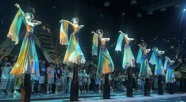 出十字街口,右拐,再做个老大娘的“公主请上车”就来到了洛邑古城北门,先在路口吃了个和“小街天府”差不多性质的美食集合店,点上瓶冰冻海碧,瞬间凉快,接着再慢悠悠的进入古城,来这里就是看仙女散花的,整点就要散一次,结果进入刚刚错过前一场,只好在古城里转悠转悠,等上50分钟,看仙女散2分钟,看我等得这么虔诚,那就一路生花吧。。。