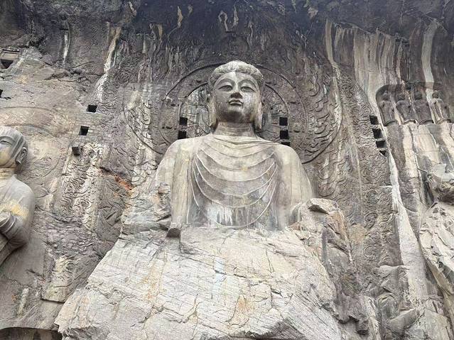 下午4点左右到达了龙门石窟,下午其实挺不错的,柳条在伊河边随风摆动,之前以为会很热,结果是阵阵凉风,这就是佛的恩赐吧。走过剪刀手佛,和佛一起比了剪刀手,再穿过千佛洞,登上98个阶梯就来到了大名鼎鼎的卢舍那大佛面前,心中有善,离佛越近。。。