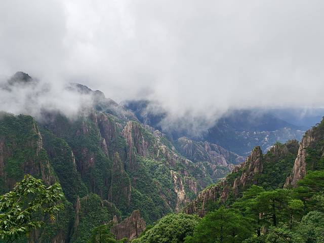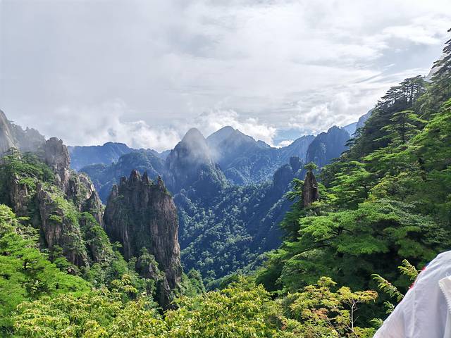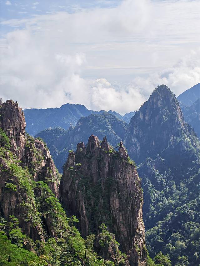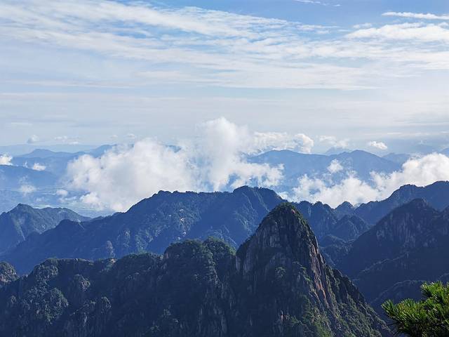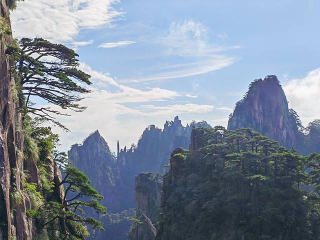 今天我们早上起的比较早,准备游玩黄山。6:35在黄山南大门换乘中心乘坐大巴上山。靠右坐临崖可以看风景。我们从云谷索道上山,坐在索道上,俯瞰着黄山的美景,群山连绵起伏,怪石嶙峋,松树在悬崖峭壁上傲然挺立,让人感叹大自然的鬼斧神工。