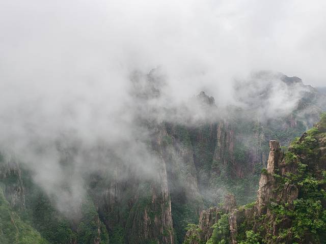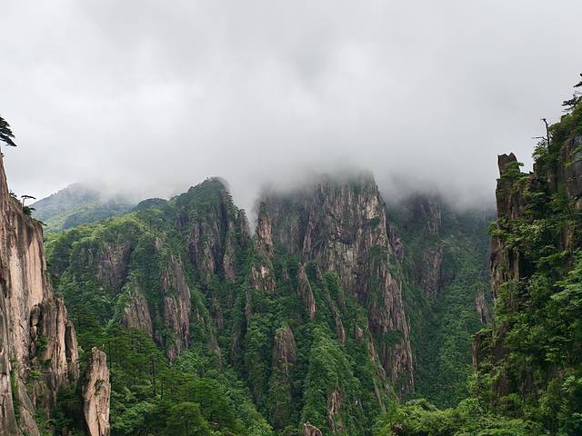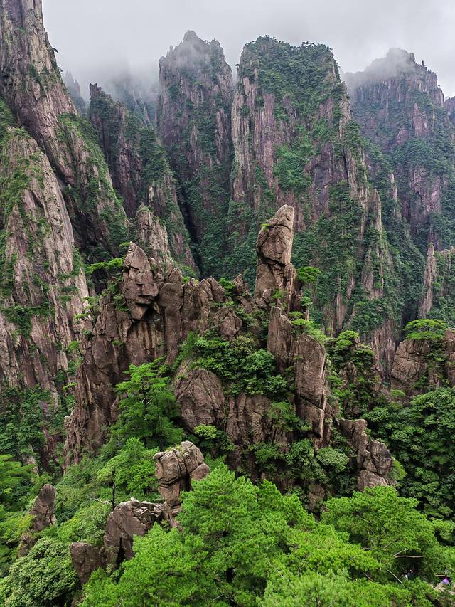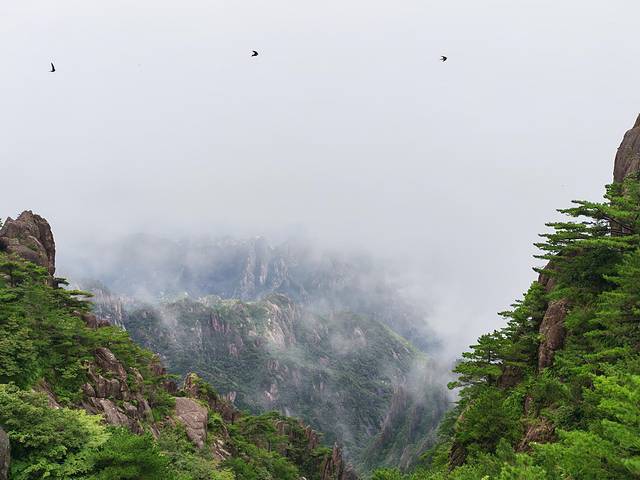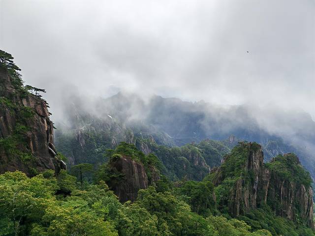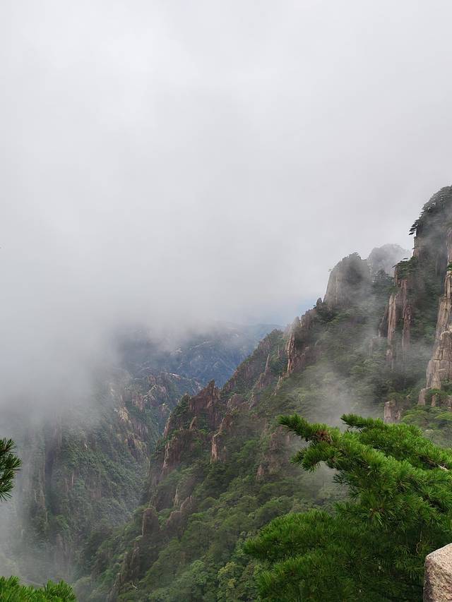 接着我们前往排云亭,西海大峡谷。西海大峡谷是黄山必去的景点之一,景色尤为壮观,峡谷深邃,两岸的山峰陡峭险峻,云雾缭绕其间,仿佛置身于仙境之中。我们从后山上,经过西海大峡谷一环、二环一路往下走,除了膝盖有些遭罪,身体到时还好,大概2小时到达谷底。