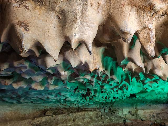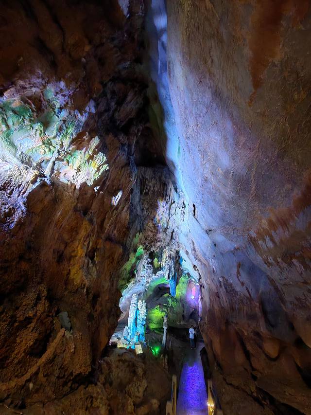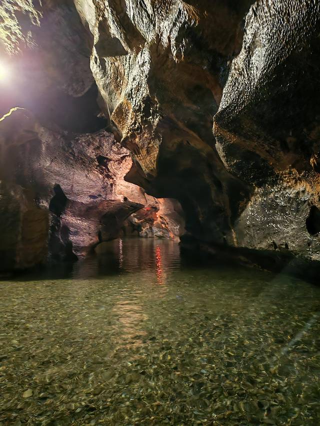 开车前往婺源灵岩洞景区,继续山路,比较崎岖,不过路况比较好,停车费5元。要先爬山到上面,再在洞内从上往下参观,到底后有一条地下河,我们坐船参观,水深据说有40米。