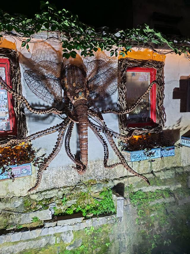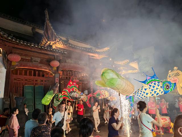 晚上我们一路走到弦高古城吃晚饭,沿着弦高古城逛了一圈,打打卡,接着在广场看川剧,这里也有鱼灯巡游表演,8点还有火壶表演。