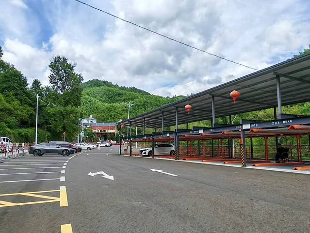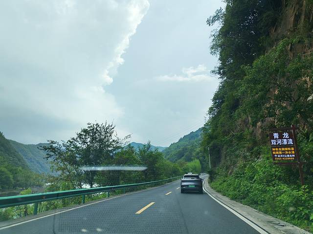 西递游览结束后我们开车沿着S222前往瑶里古镇,路上双向单车道,路况比较好,一边丛山峻岭,一边是蜿蜒的新安江。中途打卡石龙瀑布,此外还看到一条小瀑布。进入浮梁县后曲折山路比较多。由于我们的车需要充电,就停在游客中心停车场,收费5元,有不少充电桩。也有不少车停在外面。