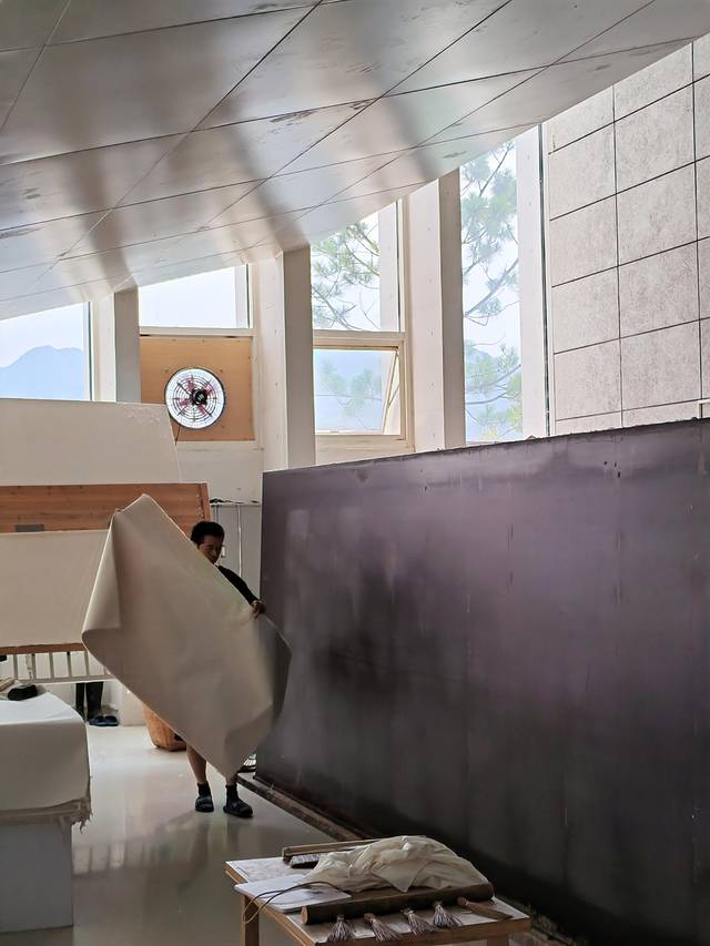 下午,我们去了宣纸博物馆。宣纸博物馆的外观设计就颇具匠心,整体像一卷展开的巨大宣纸,墙面的纹理模仿宣纸的质感,层层叠叠,古朴而典雅,远远望去,就像一件精美的艺术品,非常适合打卡。