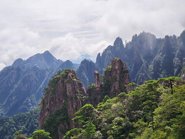 下了索道后,我们沿着山路前行,一路上欣赏着各种奇景。石笋杠有十八罗汉朝南海近景。上坡前往始信峰,有探海松,竖琴松,接引松,看701发射塔。