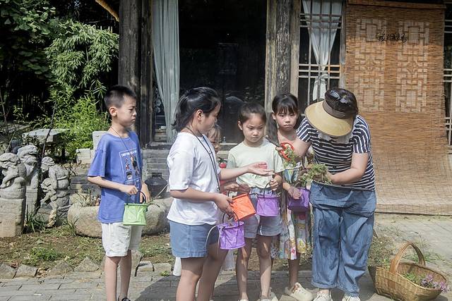 第二天,我们来到了杨凌花溪园。一进入园区,空气中满是香草的芬芳,这里宛如一个梦幻的植物王国。工作人员带领孩子们开启了香草探秘之旅,孩子们亲手采摘薄荷、紫苏等香草,了解它们的来历和作用。自制天然驱蚊水和即饮紫苏水的过程充满了乐趣,孩子们成就感满满,好奇心也被进一步激发。