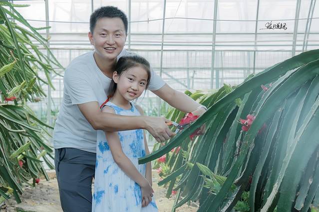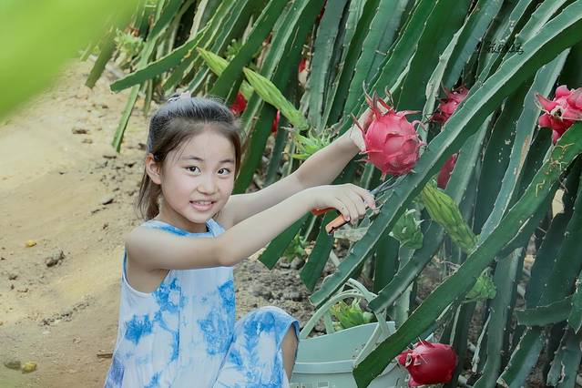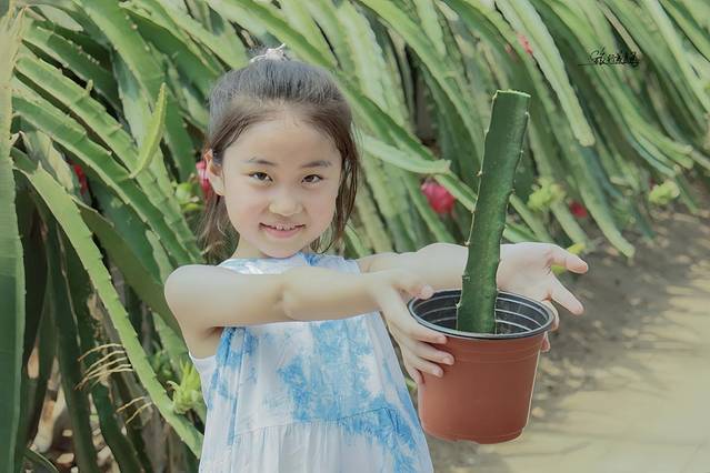 最让孩子兴奋的要数采摘环节了。女儿小心翼翼地拿起剪刀,认真挑选着心仪的火龙果,当亲手剪下火龙果的那一刻,她的脸上洋溢着满满的成就感。不仅如此,还有种植体验,她认真地种下自己的幼苗,还领养了一株,仿佛承担起了一份小小的责任。