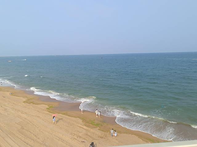 15分钟左右,我们到了海边浴场,海边浴场沙子柔软,应该是日照最柔软的沙子了,沙滩面积大,比较平缓,特别适合小一点的孩子玩水、玩沙子,唯一不足的就是划定的游泳区域海水有点浅,成人和大的孩子可能不想万平口的浴场玩的那么尽兴,海面的摩托艇比较酷,有兴趣的旅友可以尝试下,好像是100元每位。