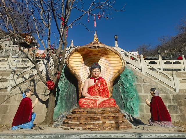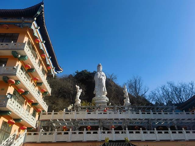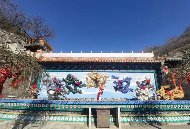 结束早市行程才还才七点半,头晚纠结了一晚要不要去北普陀山,时间这么早,没有不去的理由了。打车前往北普陀山景区,原计划就去北普陀寺看看,从大门口搭观光车早去早回,结果观光车9点才运营,来都来了,怎么办?只得走路了,从大门走到山门停车场,大约半小时,一路上空气非常清新,路旁都是枯枝老树,但一点也不影响舒畅的好心情。到了山门停车场,直奔北普陀寺,北普陀山,一口气爬到九龙壁处,因为冬季防火,再往上走的通道已经关闭,只得遗憾往下了,在路上看到一个招牌,了解了北普陀寺的几个值得一看的地方,但是问了一个师傅,很多点都关闭了。往回走的时候又顺路去看了下观音洞。9点半就结束了北普陀山的行程,回程坐到了观光车,出了大门又打到了车去辽沈战役纪念馆,上车仔细一看,居然是辆假的士,司机自己在车前挡粘上了空车的字样标志,我一问,师傅说和打车价格差不多,大白天那也就算了。