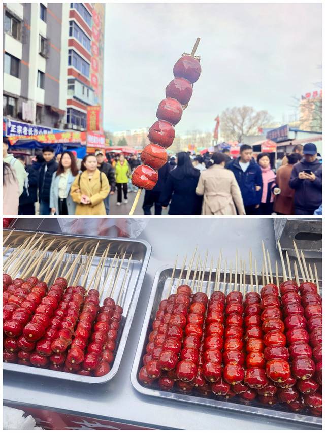 一大早就直奔小河沿早市,沈阳故宫周边范围内没有共享单车停车点,必须走到东门外才可以。小河沿早市特别热闹,而且附近街道都是摆摊的,人挤人水泄不通,但是整个早市不长,我从头走到尾又反过来走到头,按照网友的推荐,买了驴打滚、锦州豆干、糖葫芦、丹东草莓等,小河沿早市比石桥子早市更热闹。