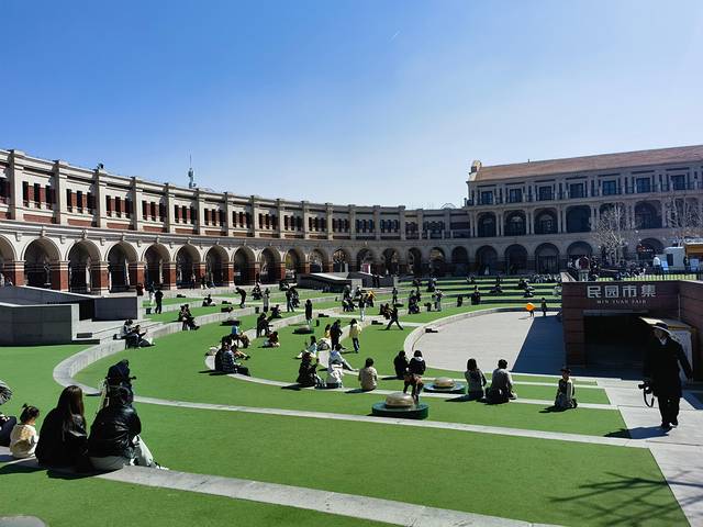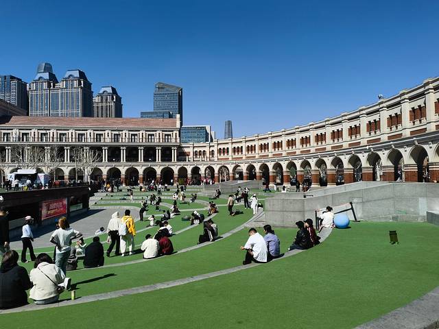 民园广场位于五大道风景区,五大道风景区是指由成都道、重庆道、常德道、大理道、睦南道这五条主要道路(以及周边区域)组成的区域,最著名的是其保存完好的近代洋楼建筑群。